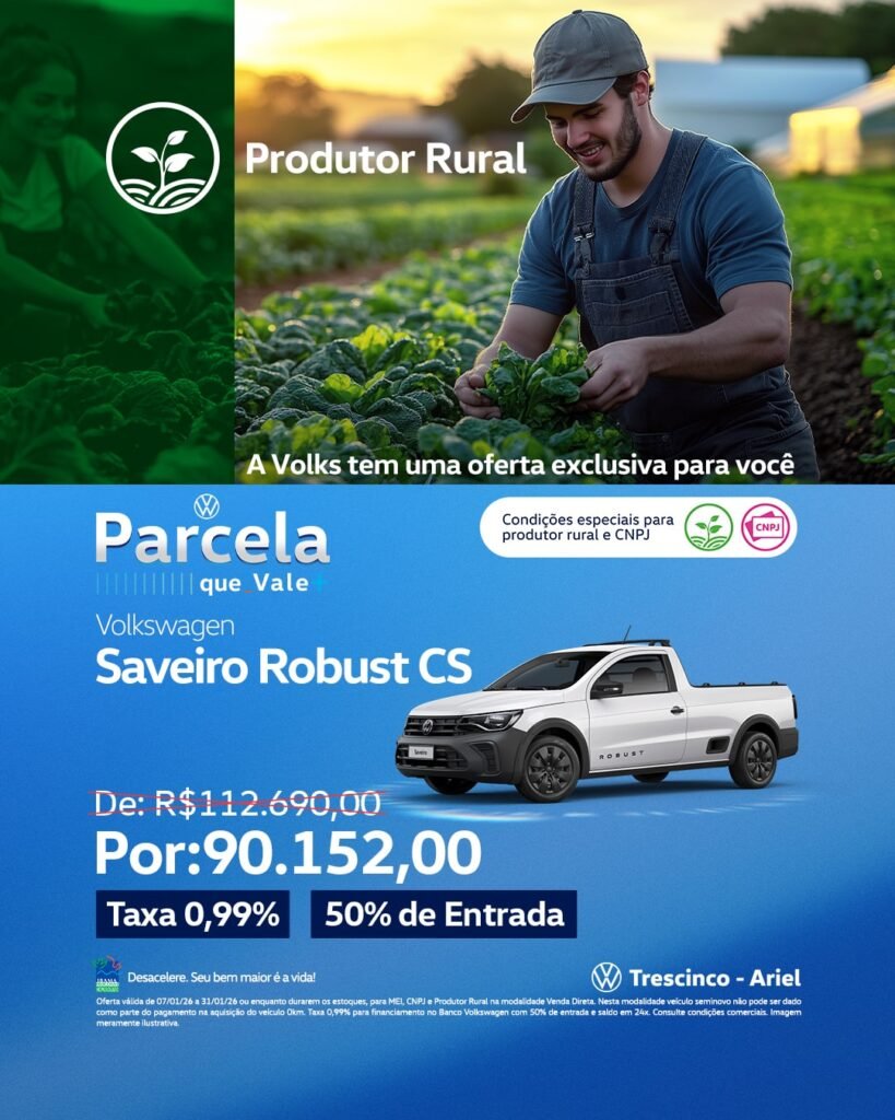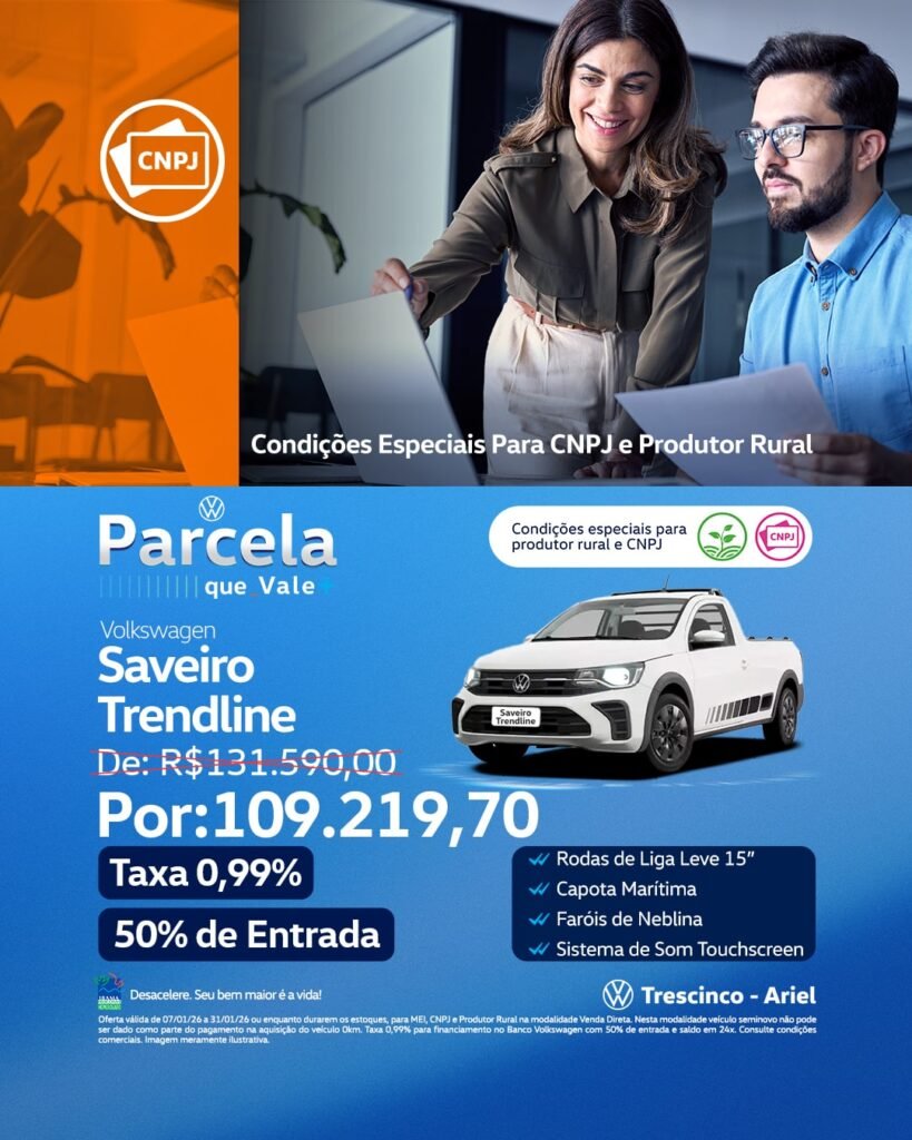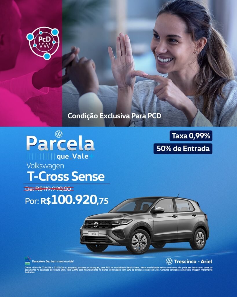 MEIs e CNPJs de qualquer porte, produtores rurais, taxistas que utilizam o veículo para trabalho e também o público PCD (pessoa com deficiência) com direito à isenção. Se você faz parte de uma dessas categorias, pode adquirir seu Volkswagen 0km com condições especiais e descontos exclusivos.